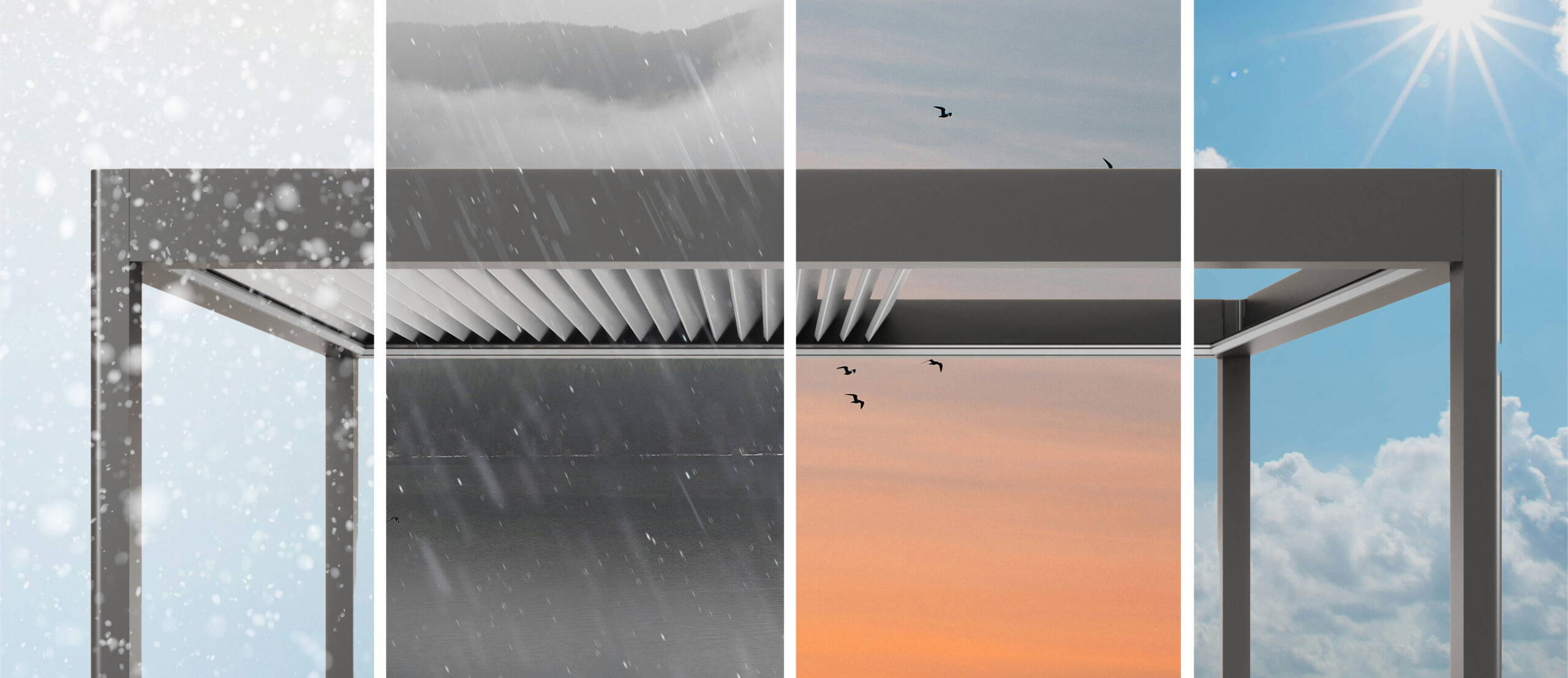 Pergola sistemleri, yağmur, rüzgar ve güneş gibi zorlu hava koşullarına karşı üstün koruma sağlar. Bu sayede dört mevsim kullanım imkanı sunar.